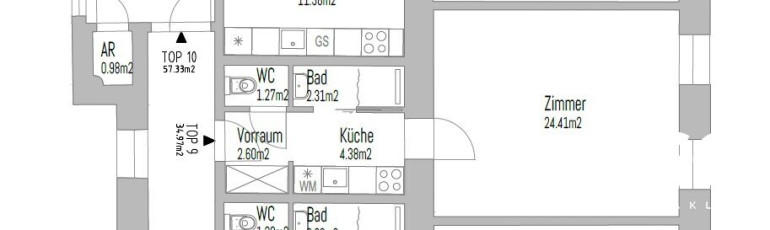 - Vorraum, 1 Zimmer, Küche, Bad, WC,
