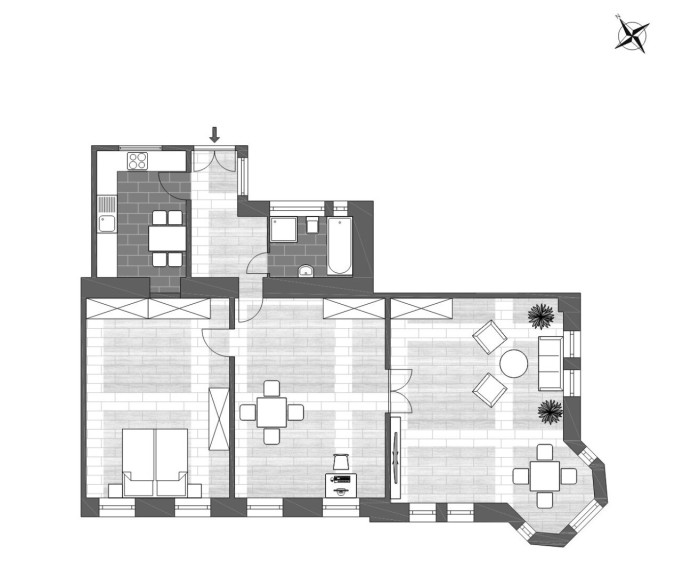 - 3 getrennt begehbare, helle, geräumige Zimmer mit Altbaucharme