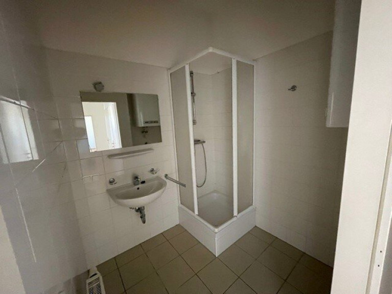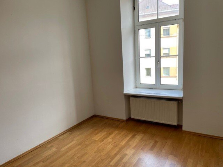Die Wohnung liegt im ersten Obergeschoß eines Mehrparteienhauses. Sie besteht aus einem Wohnzimmer mit integrierter Küche, 2 Schlafräumen, einem Vorraum, einem Badezimmer (Dusche, Waschmaschinenanschluss) und einem WC.