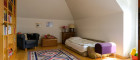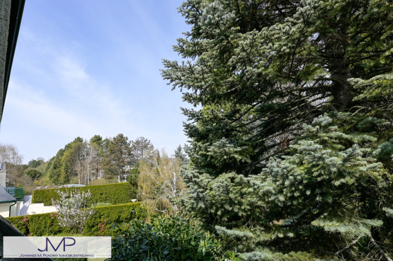 Über eine elegante, geschwungene Steintreppe erreicht man schließlich das Obergeschoss. Hier erwarten Sie vier sehr große Zimmer sowie ein Badezimmer mit getrenntem WC. Alle Räume bieten dabei einen schönen Blick ins Grüne – sowohl garten- als auch straßenseitig.