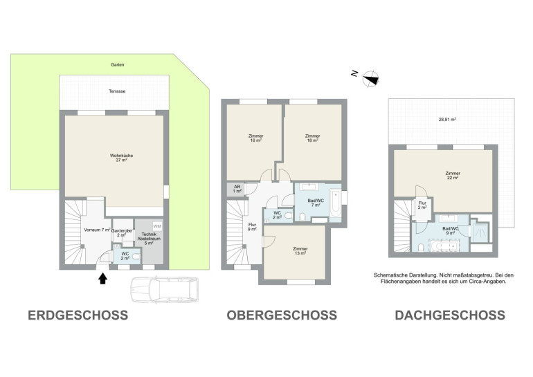 - ca. 153 m² Wohnfläche (EG, OG, DG)