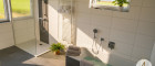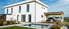 Der lichtdurchflutete Wohnbereich mit vorstehender Terrasse ist sehr großzügig gehalten und durch die üppigen Glasflächen können Sie stets den Ausblick in Ihren Garten genießen.