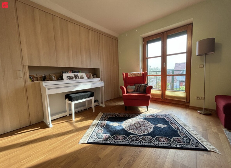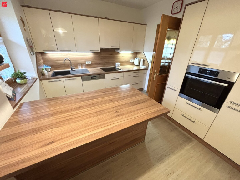 Dieser stilvolle Familientraum ist sehr gut aufgeteilt: eine moderne Küche, ein geräumiges Vorzimmer, ein lichtdurchfluteter Essbereich, ein großzügiger Wohnbereich, zwei Badezimmer und drei freundliche Zimmer im Obergeschoß hält diese Liegenschaft für Sie bereit. Im Vorzimmer wird der Schmutz von den Schuhen abgefangen und Sie haben hier reichlich Platz für Schuhe und Ihre Garderobe. Die Küche ist mit modernen, cremefarbenen Hochglanz-Fronten, einem Abstellraum und hochwertigen Geräten ausgestattet. Dank der Kücheninsel haben Sie hier reichlich Platz, um Köstlichkeiten für Ihre Liebsten zuzubereiten. Der Essbereich ist mit einer südlichen Fensterfront ausgestattet, sodass Sie hier einen schönen Blick in Ihren Garten beim Essen genießen können. Der angrenzende, westlich ausgerichtete Wohnbereich bietet Zugang zur sonnigen Terrasse und dem Garten. Der zentral gelegene Kachelofen sorgt hier für wohlige Wärme an winterlichen Tagen. Im sanierten Badezimmer im Untergeschoß erwartet Sie eine Handtuchtrockner, eine Dusche, eine Toilette, ein Fenster, sowie ein Waschtisch mit Stauraum. Im oberen Geschoß sind alle Zimmer getrennt begehbar: zwei großzügige Schlafzimmer mit verbauten Kleiderschränken zur optimalen Nutzung der Dachschrägen (eines hiervon mit östlichem Balkon), sowie ein weiteres kleineres Zimmer mit Balkon. Zudem befindet sich das unsanierte Hauptbadezimmer mit Waschtisch, Toilette, Badewanne und Bidet, sowie verbaute Stauraummöglichkeiten für Handtücher, Bademäntel & Co im Obergeschoß.
