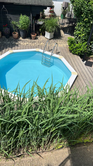 Außenbereich: Der Garten ist als privater Rückzugsort gestaltet – mit Terrassen- und Sitzbereichen sowie einem Pool (Ø ca. 3,70 m, Baujahr 2021/2022) inklusive Technik-Hütte und Holzdeck. Zusätzlich besteht eine Vorbereitung für eine Solaranlage.
