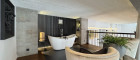 Essbereich: Durch einen attraktiven verglasten Raumteiler betritt man den Essbereich mit einer voll ausgestatteten Designküche. Eine moderne Inselküche mit Natursteinoberflächen, integriertem TV und edlen Beleuchtungselementen bildet das Herzstück. Ergänzt wird sie durch ein optisches Ambiente-Feuer, das für stilvolle Stimmung sorgt.