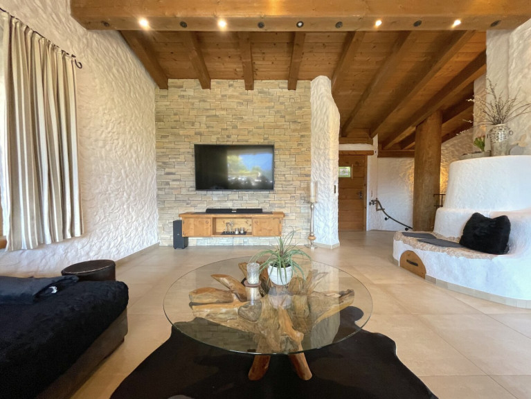 Das Bestandsgebäude überzeugt durch seinen urigen Tiroler Charakter mit viel Holz, Kachelöfen und großzügigen Raumverhältnissen. Mehrere Terrassen- und Balkonflächen sowie eine großzügige Dachterrasse schaffen ein besonderes Wohngefühl mit viel Freiraum und Ausblick.