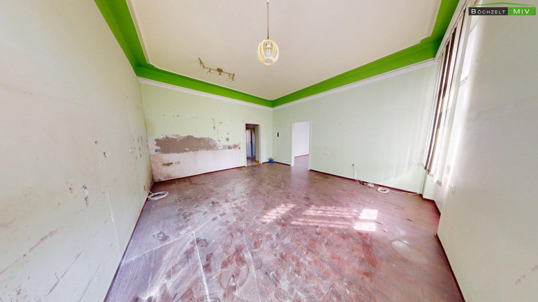 Zum Verkauf gelangt eine sanierungsbedürftige Wohnung im 1. Obergeschoss einer charmanten Stadtvilla in der Badgasse 11. Die Netto-Wohnfläche beträgt rund 72,0 m² und verteilt sich auf eine große Wohnküche, zwei Schlafzimmer sowie Nebenräume. Hohe Raumhöhen von rund 3,1 m bis 3,2 m unterstreichen den typischen Altbaucharakter und bieten viel Gestaltungspotenzial für eine ansprechende Sanierung. Die Wohnung befindet sich in einfachem, deutlich modernisierungsbedürftigem Zustand und eignet sich daher ideal für Käufer, die ihr neues Zuhause nach eigenen Vorstellungen gestalten möchten oder die Wohnung nach Sanierung als Anlageobjekt nutzen wollen. Durch die Lage im 1. Obergeschoss ist die Einheit gut erreichbar, gleichzeitig profitieren Sie von einer angenehmen Distanz zum Straßenraum.