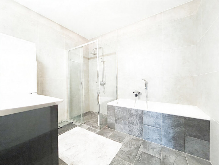 - Komfortables, helles Badezimmer mit Dusche und Badewanne