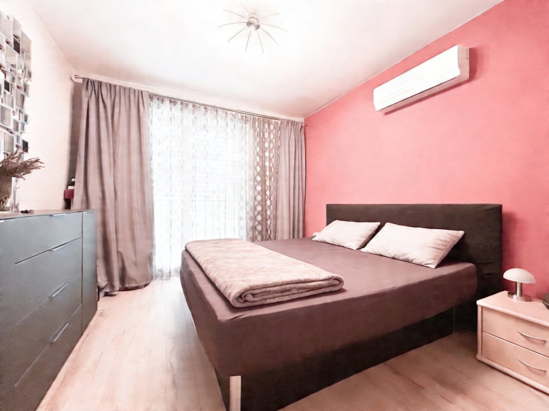 Die Immobilie kann teilmöbliert übernommen werden. Zur Ausstattung zählen unter anderem ein hochwertiges orthopädisches Wasserbett, ein Esstisch, eine Ledergarnitur sowie weitere Möbelstücke. Die Wohnung ist zudem mit einer Raumkühlung ausgestattet.