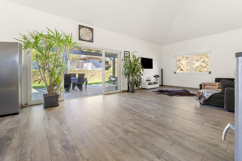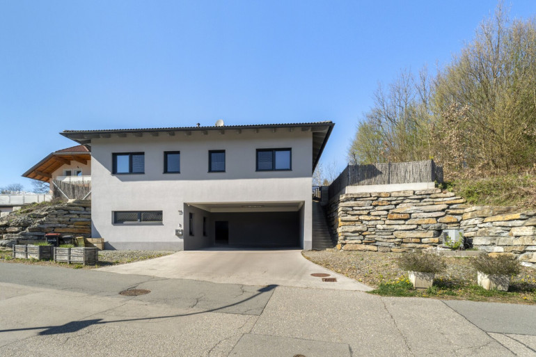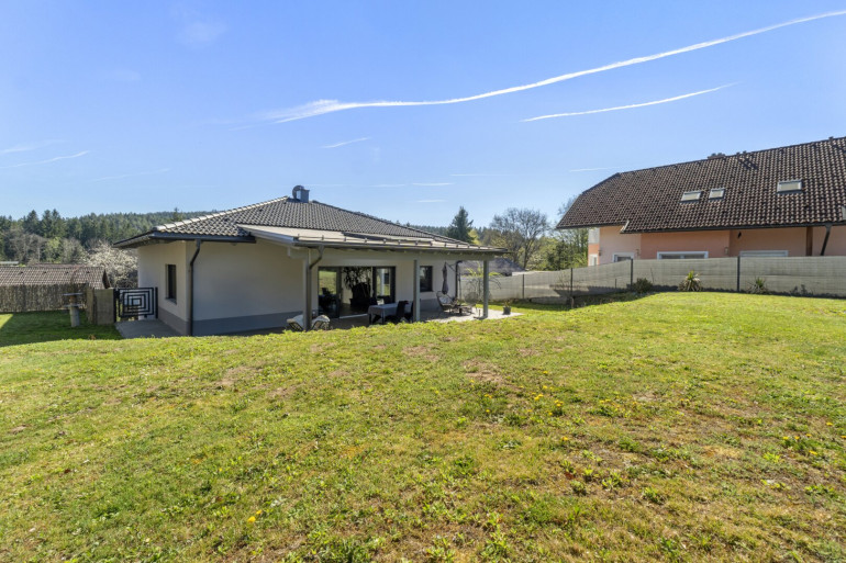 Das im Jahr 2016 errichtete Haus präsentiert sich als moderner Hochparterre-Bungalow in einem sehr gepflegten, neuwertigen Zustand. Die Architektur überzeugt durch eine klare Linienführung, ausgeführt in nachhaltiger Holzriegelbauweise auf einem massiven Untergeschoss.