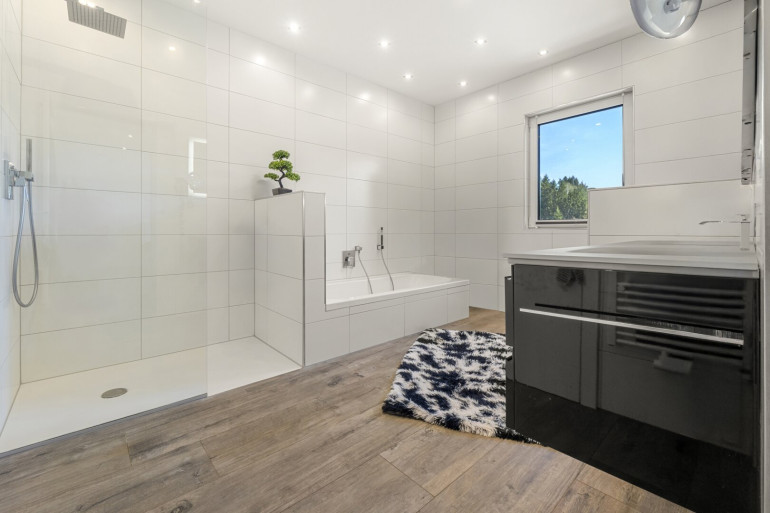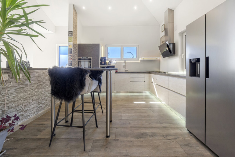 Zu den Ausstattungsmerkalen zählen unter anderem elektrische Raffstores, eine Alarmanlage sowie ein integriertes Netzwerk. Ein Holzofen ergänzt die Heizung und schafft zusätzliche Wohnqualität. Generell besticht das Objekt durch einen besonders hohen und nachhaltigen Energiestandard.