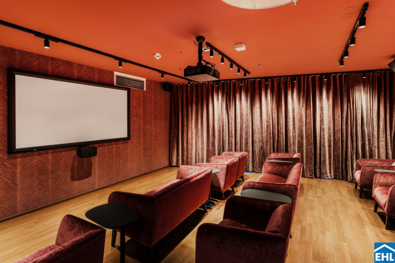 Neben Ihrem privaten Wohnbereich profitieren Sie von großzügigen, hochwertig gestalteten Gemeinschaftsflächen, die weit über das Übliche hinausgehen: Ob konzentriertes Arbeiten im Co-Working Space, entspannte Stunden in der stilvollen Bewohner Lounge oder aktive Pausen im hauseigenen Fitness- und Yogastudio – hier finden Sie genau den Ort, den Sie gerade brauchen. Für gesellige Momente stehen Ihnen ein exklusiver Private-Dining-Raum, ein Gaming Room und ein einladender Kinosaal zur Verfügung. Wer kreativ tätig werden möchte, findet im professionell ausgestatteten Podcast Raum den idealen Rahmen. Ein besonderes Highlight ist die grüne Dachterrasse mit Gemeinschaftsgarten – ein Rückzugsort über den Dächern der Stadt, der zum Entspannen, Gärtnern und Genießen einlädt.