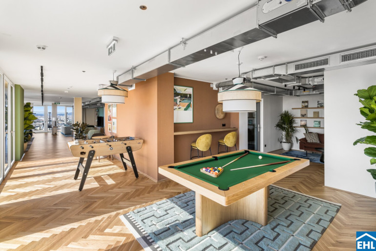 Neben Ihrem privaten Wohnbereich profitieren Sie von großzügigen, hochwertig gestalteten Gemeinschaftsflächen, die weit über das Übliche hinausgehen: Ob konzentriertes Arbeiten im Co-Working Space, entspannte Stunden in der stilvollen Bewohner Lounge oder aktive Pausen im hauseigenen Fitness- und Yogastudio – hier finden Sie genau den Ort, den Sie gerade brauchen. Für gesellige Momente stehen Ihnen ein exklusiver Private-Dining-Raum, ein Gaming Room und ein einladender Kinosaal zur Verfügung. Wer kreativ tätig werden möchte, findet im professionell ausgestatteten Podcast Raum den idealen Rahmen. Ein besonderes Highlight ist die grüne Dachterrasse mit Gemeinschaftsgarten – ein Rückzugsort über den Dächern der Stadt, der zum Entspannen, Gärtnern und Genießen einlädt.