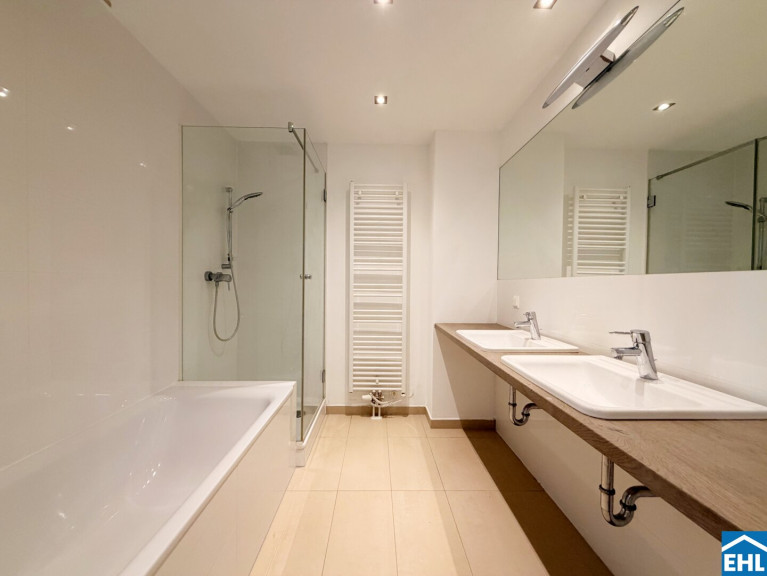 Die Wohnung befindet sich im 1. Dachgeschoss und verfügt über eine großzügige Wohnküche mit direktem Zugang auf die Terrasse, zwei getrennt begehbare Schlafzimmer, ein Badezimmer mit Badewanne, Dusch und Doppelwaschbecken, ein separates WC, einen Abstellraum mit Waschmaschineanschluss, sowie einen großzügigen Vorraum.