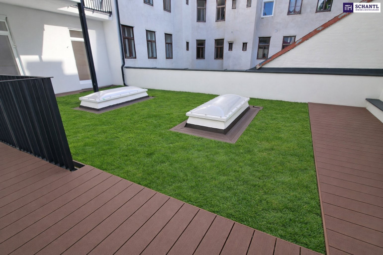 Terrasse: Großzügige 32 m² Außenfläche mit ruhiger Hoflage