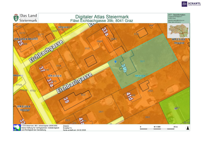 Die Liegenschaft befindet sich in der Eichbachgasse 39b im beliebten Grazer Bezirk Liebenau (8041 Graz). Die Umgebung zeichnet sich durch eine ruhige, gewachsene Wohngegend mit viel Grün aus und bietet ein angenehmes, entspanntes Wohnklima. Trotz der idyllischen Lage ist die Infrastruktur sehr gut, Einkaufsmöglichkeiten, Schulen, Kindergärten, öffentliche Verkehrsanbindungen sowie wichtige Einrichtungen des täglichen Bedarfs sind in kurzer Zeit erreichbar. Auch die Anbindung an das Grazer Stadtzentrum sowie an überregionale Verkehrsachsen ist hervorragend. Diese Lage verbindet auf ideale Weise naturnahes Wohnen, Ruhe und Privatsphäre mit den Vorzügen des urbanen Lebens.