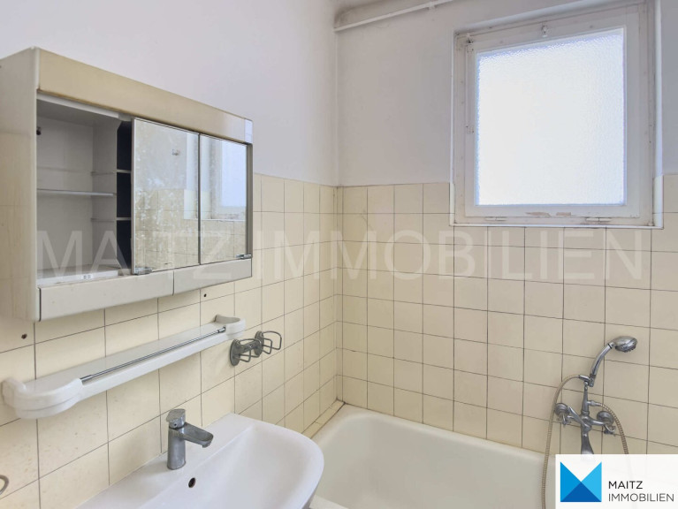 Die Wohnung ist sanierungsbedürftig, bietet jedoch enormes Potenzial zur individuellen Gestaltung und eignet sich ideal für Eigennutzer oder Anleger.