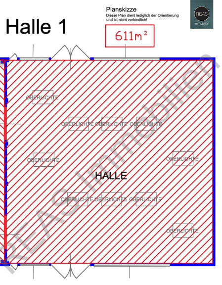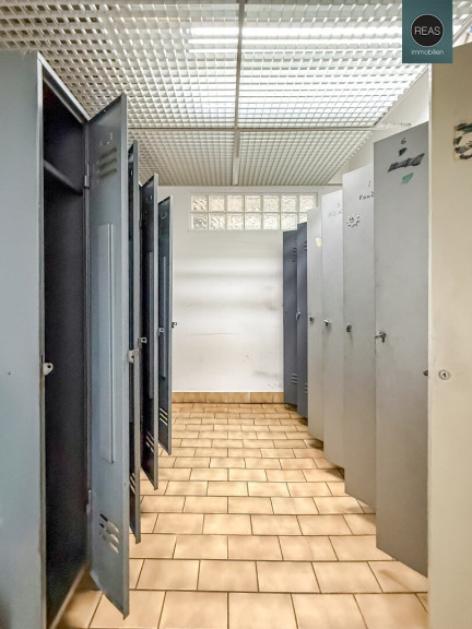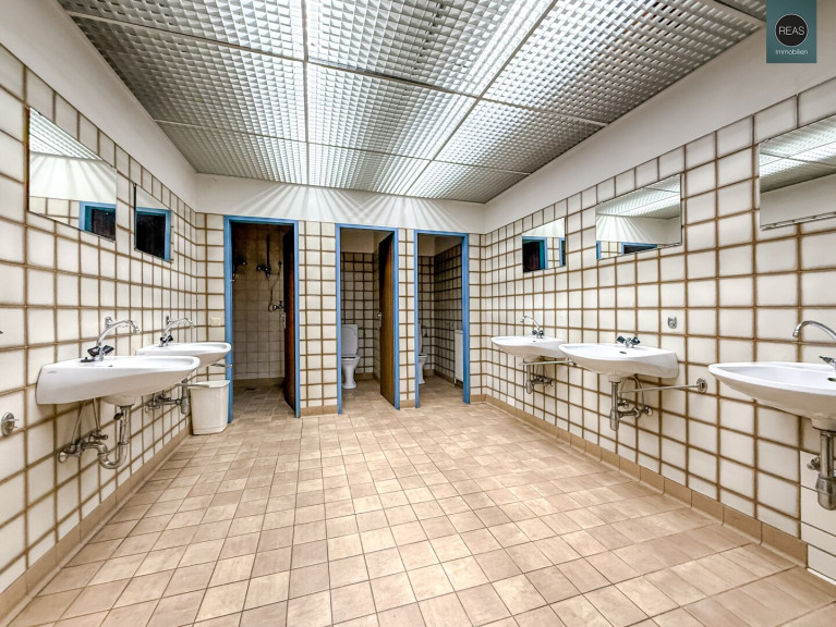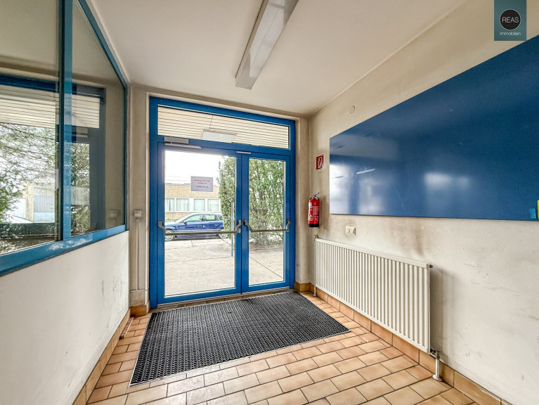 - Halle mit ca. 611m2 inklusive 2 gegenüberliegenden ebenerdigen Eingängen samt großen Einfahtstoren, Fensterflächen sowie Oberlichten für eine optimale Belichtung