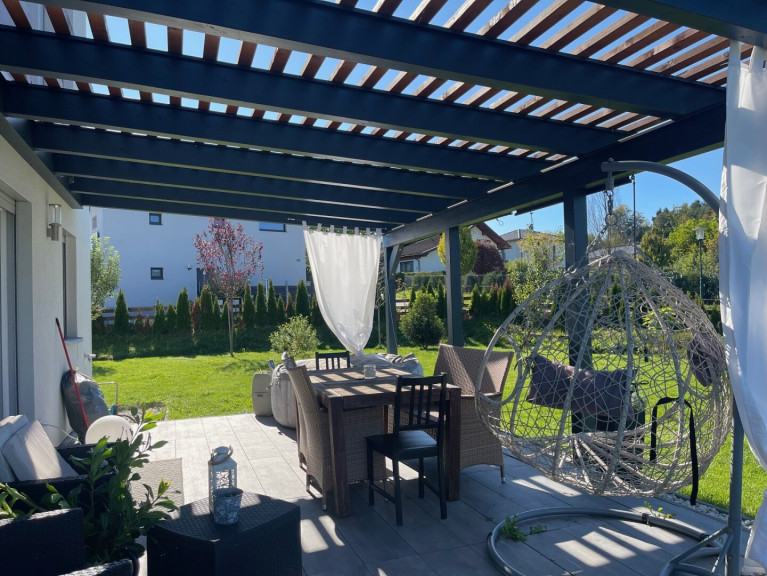 Um das Haus befindet sich ein schön angelegter Garten mit verschiedensten Pflanzen und Bäumen. Ein Gartenhäuschen mit einer gemütlichen Aussichtsterrasse dient im Sommer als Wohnzimmer im Freien und zum Grillen.