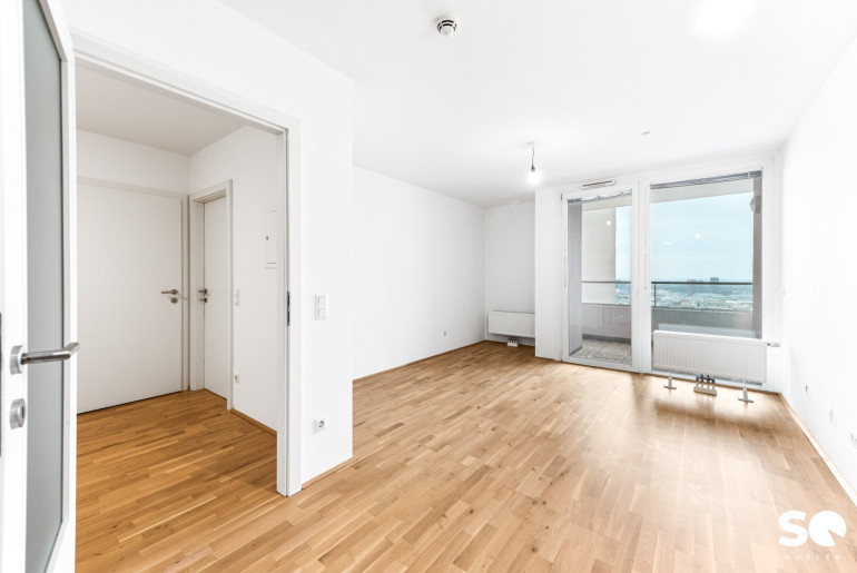 Diese lichtdurchflutete 2-Zimmer-Wohnung im 19. Obergeschoß vereint urbanes Wohnen mit einem außergewöhnlichen Lebensgefühl: Weitblick und modernes Design – mitten in Wien.