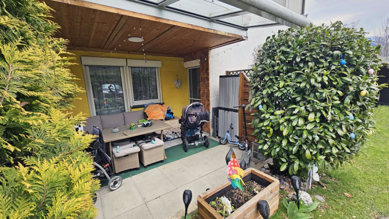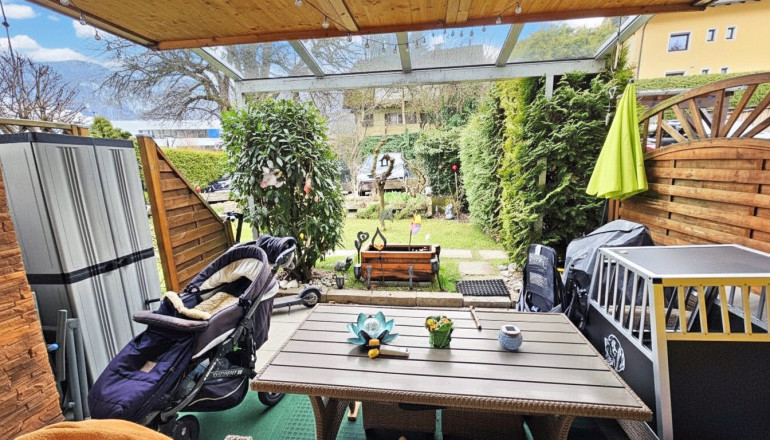 Wohnliche 3-Zimmer-Gartenwohnung mit Stellplatz im Freien in Kufstein zu kaufen. Die Wohnung im Erdgeschoß hat eine Größe von ca. 80 m² Wohnfläche und eine schöne teilweise überdachte Terrasse im Süden mit ca. 5 m², direkt angrenzender Garten (Allgemeinfläche). Gute Wohnlage am Stadtrand von Kufstein.