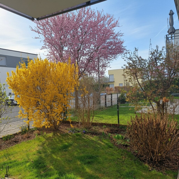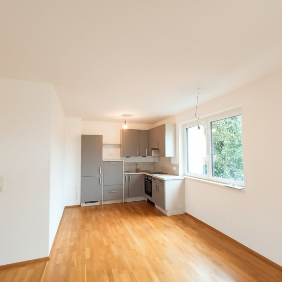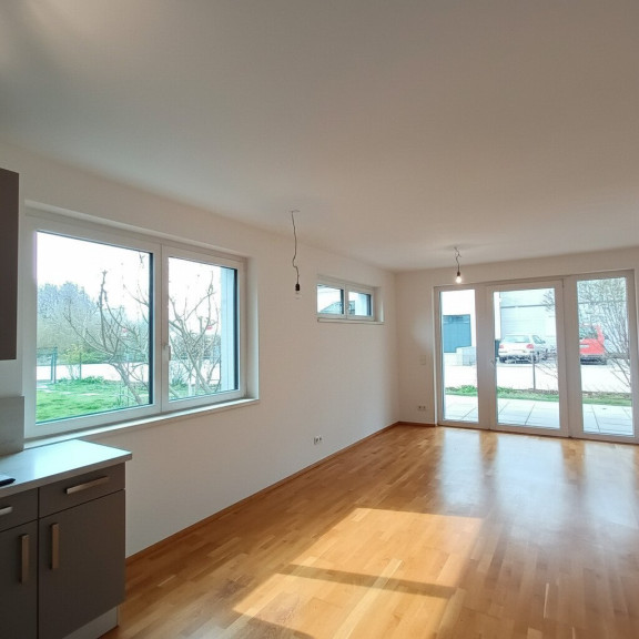Die schöne 2-Zimmerwohnung im Erdgeschoss betritt man durch den gepflegten Eingangsbereich, welcher ausreichend Platz für eine Garderobe sowie den zentralen Zugang zu allen Räumlichkeiten der Wohnung bietet. Unmittelbar rechts vom Eingangsbereich befindet sich das Badezimmer mit großer, verglaster Dusche und WC. Beide Nassräume sind durchgehend mit modernen Fliesen ausgestattet. Ein Abstellraum schafft Stauraum für nützliche Alltagsgegenstände. Das Schlafzimmer bietet genügend Platz für ein großes Bett und einen Wandschrank.. Der Wohn- Essbereich ist mit einer Einbauküche sowie modernen Gerätschaften ausgestattet. Durch dieses gelangt man nach draußen auf die Terrasse und in den Garten. Die großen Fenster sorgen für viel Licht im Wohnraum,der helle Parkett lässt den Raum offen und freundlich wirken. Die sonnige, idyllische Terrasse gewährt mitsamt einer Gartenfläche von 178,41m² Ruhe und Erholung und hat eine angenehme Größe für einen geselligen Abend mit Freunden und Familie. Eine Fußbodenheizung sorgt auch an kalten Winterabenden für warme Füße.