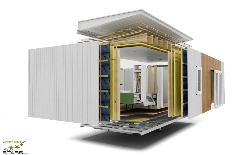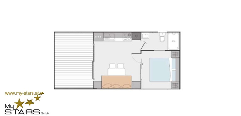 Zur Auswahl stehen verschiedene Mobilheim-Haus-Typen (bitte Detailunterlagen anfragen), z.B. das Modell: "M-Line Pure 804 inkl. Terrasse".