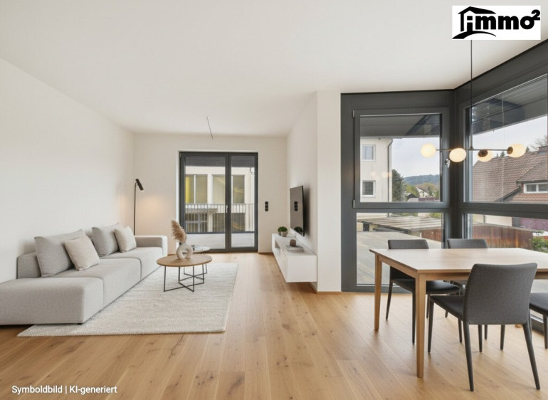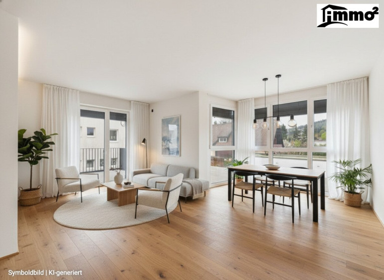 Der Wohn- und Essbereich mit direktem Zugang zum Balkon schafft eine herrliche Wohnatmosphäre und erweitert den Lebensraum ins Freie.