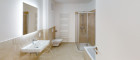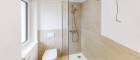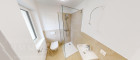 Die Wohnung verfügt über zwei Zimmer, die flexible Nutzungsmöglichkeiten bieten. Eines der Zimmer hat direkten Zugang zu einem voll ausgestatteten Badezimmer mit Waschbecken, Handtuchheizung, Badewanne, Dusche, WC sowie Anschlüssen für Waschmaschine und Trockner. Ein weiteres Bad, zugänglich von der Wohnküche, ist funktional mit WC, Waschbecken und Dusche ausgestattet – eine Ausstattung, die die Vermietbarkeit deutlich erhöht.