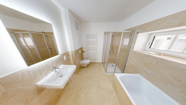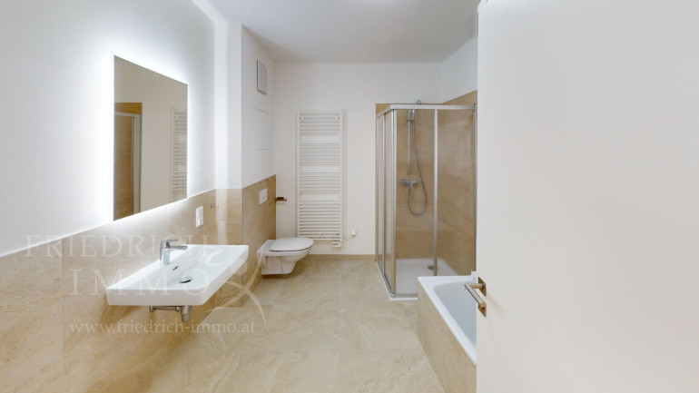 Top 3 ist befristet vermietet bis 14. Juli 2034. Die aktuelle monatliche Nettomiete beträgt € 841,68 (€ 15,13/m²), ergänzt durch Betriebskosten und Heizkostenakonto, die direkt vom Mieter getragen werden. Die Brutto-Monatsvorschreibung liegt bei € 1.132,35. Auf den Nettokaufpreis von € 327.742 ergibt sich eine Rendite von rund 3,08 %. Die Miete ist indexiert mit einem Schwellwert von 3 bzw. 5 %, was eine kontinuierliche Anpassung an die Preisentwicklung sicherstellt.