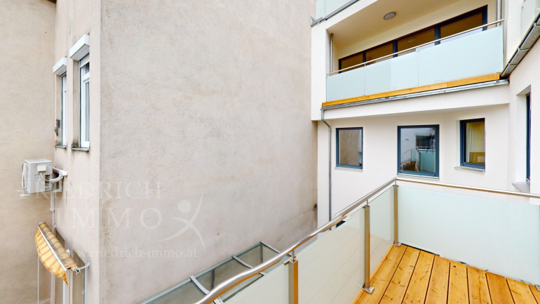 Ein besonderes Highlight ist der Balkon (6 m²), zu dem sowohl von einem der Zimmer als auch direkt von der Wohnküche Zugang besteht. Er erweitert den Wohnraum und ist ein klarer Pluspunkt für Mieter.
