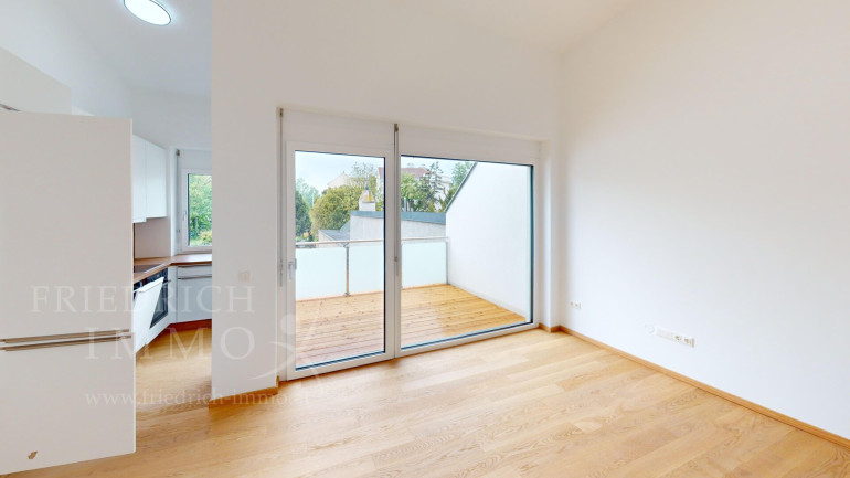 Die obere Ebene gehört dem großzügigen Wohn- und Essbereich mit offener Markenküche, die über modernste Geräte verfügt und direkt auf die 8,69 m² große Terrasse führt. Hier erweitert sich der Wohnraum nach draußen – ein klarer Pluspunkt, der die Attraktivität für Mieter spürbar erhöht. Eine separate Gästetoilette auf dieser Etage rundet den durchdachten Grundriss ab.
