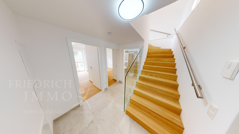Das 2024 fertiggestellte Gebäude setzt Maßstäbe in Sachen Zukunftssicherheit: Drei Luftwärmepumpen, eine PV-Anlage mit 13,2 kWp, Dreifachverglasung und Vollwärmeschutz ergeben einen Heizwärmebedarf von nur 37 kWh/m²a. Klimaneutral und ESG-konform bedeutet das für Sie als Eigentümer keine absehbaren Investitionen in die Gebäudetechnik für die nächsten zwei Jahrzehnte.