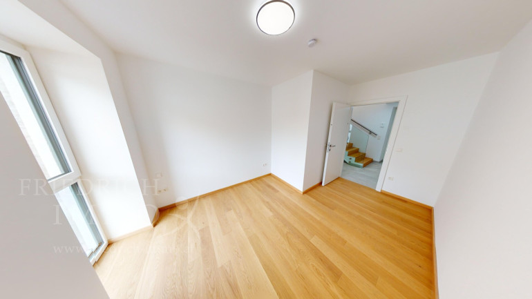Auf der unteren Ebene empfängt ein einladendes Vorzimmer, das den Weg in zwei Schlafzimmer ebnet. Ein voll ausgestattetes Badezimmer mit Dusche, Waschbecken, WC und Waschmaschinenanschluss deckt alle Anforderungen des Alltags ab.