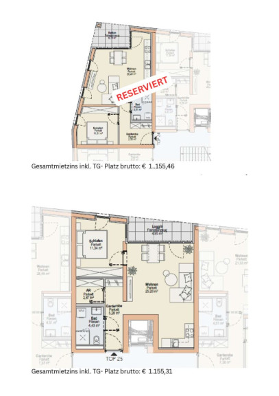 Der monatliche Gesamtmietzins beinhaltet die Miete für die jeweilige Wohnung und den zugehörigen Tiefgaragen- oder Außenabstellplatz sowie Betriebs- und Heizkosten.