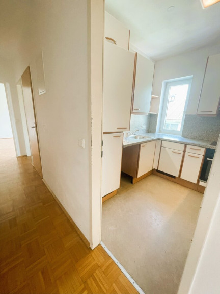 Die lichtdurchflutete Wohnung im Stadtzentrum verfügt über eine Wohnfläche von rund 51 m². Vom Vorraum aus sind alle Räume zentral begehbar: das Schlafzimmer, die separate, möblierte Küche, das Badezimmer mit Dusche sowie das separate WC und der großzügige Wohn- und Essbereich. Der Wohnraum überzeugt durch viel Tageslicht und bietet ausreichend Platz für eine individuelle Gestaltung mit gemütlicher Essecke.