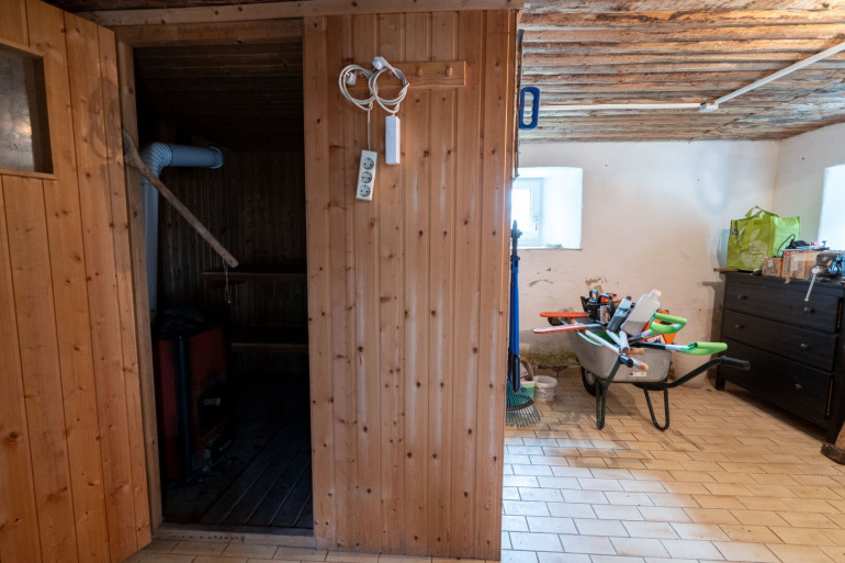 Herzstück des Hauses ist die einladende Stube, die durch gleich drei traditionelle Kachelöfen zusätzlich an Gemütlichkeit gewinnt – perfekt für behagliche Stunden an kühleren Tagen. Das Badezimmer ist funktional mit Badewanne und WC ausgestattet.