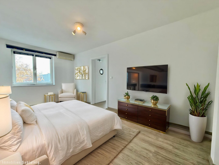 Das Herzstück der Wohnung bildet das lichtdurchflutete und großzügig geschnittene Wohnzimmer, das durch seine offene Raumgestaltung vielfältige Möglichkeiten zur individuellen Einrichtung bietet. Eine moderne Fußbodenheizung sorgt in den kälteren Monaten für angenehme Wärme und schafft ein behagliches Wohnambiente. An warmen Sommertagen bietet eine praktische Klimaanlage zusätzlichen Komfort.