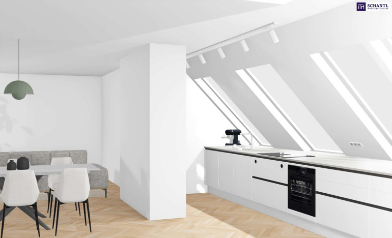 Wenn Sie nach unten schauen, liegt Ihnen die Stadt zu Füßen. Kopf hoch, und der Himmel über Wien ist zum Greifen nah. Genau so und nicht anders präsentiert sich dieses wunderbar angelegte Dachgeschoss mit all seinen Terrassen auf zwei Ebenen. In dieser großartigen Wohnung erwartet Sie im 1.DG ein zentraler Vorraum mit ausreichend Platz für die Garderobe, ein praktischer Abstellraum unter der Treppe, drei sehr geräumige Schlafzimmer, ein einladendes Badezimmer mit Dusche und das Gäste WC mit Handwaschbecken. Rauf ins 2.DG und Sie genießen Ihren über 40 m² großen Wohn-Essbereich, mit Kochgelegenheit und Ausgang zu der ca. knapp 7 m² großen Terrasse im Innenhof. Für ein bequemes Wohnen, wurde auch an ein weiteres WC auf der Wohnebene gedacht. Diese Wohnung ist einfach genial!