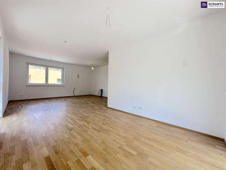 Weiters besticht die ca. 87 m² große Wohnung durch ihren effizienten Grundriss sowie die offene Wohnraumgestaltung. Alle Zimmer sind in Richtung Nachmittagssonne ausgerichtet. Hier bleiben definitiv keine Wünsche offen!