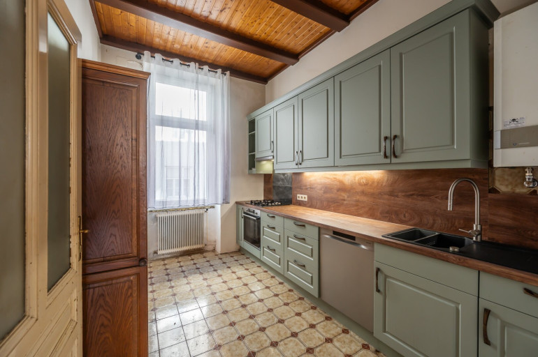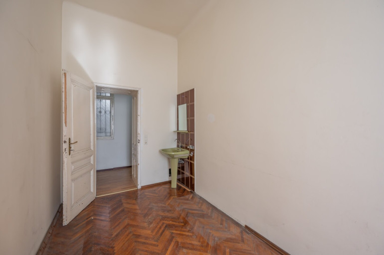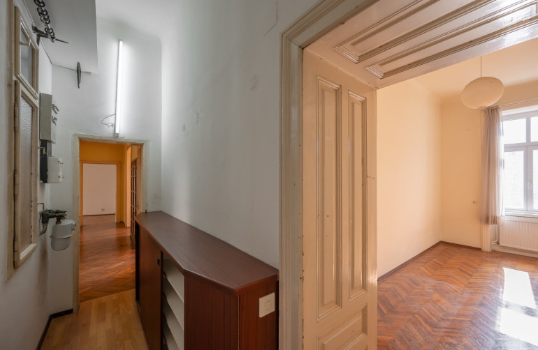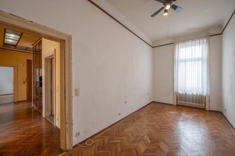 Die Wohnung befindet sich im 2. Stock (ohne Lift) und in einem sanierungsbedürftigen Zustand. Sie bietet sehr viele Elemente eines Stilaltbaus: