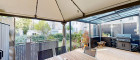 Die Terrasse präsentiert sich als vollwertiger Wohnbereich im Freien. Überdacht und großzügig gestaltet, bietet sie ausreichend Platz für Essbereich, Lounge und entspannte Stunden im Grünen.