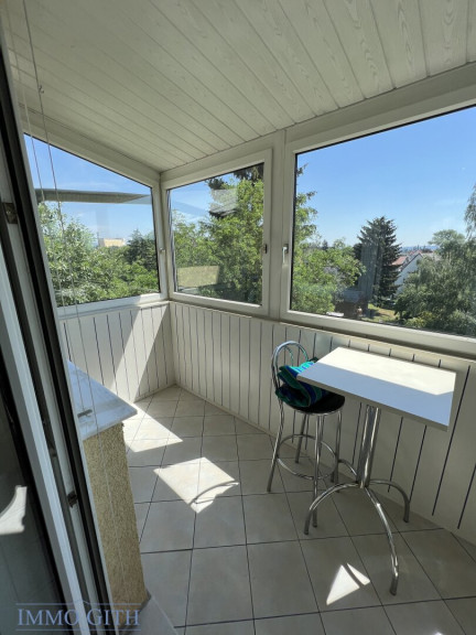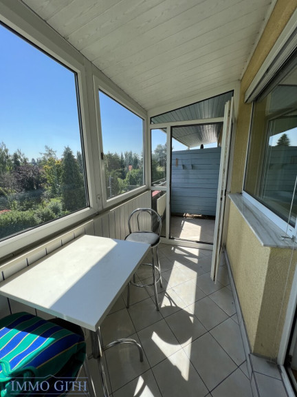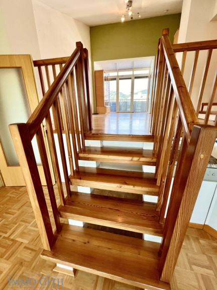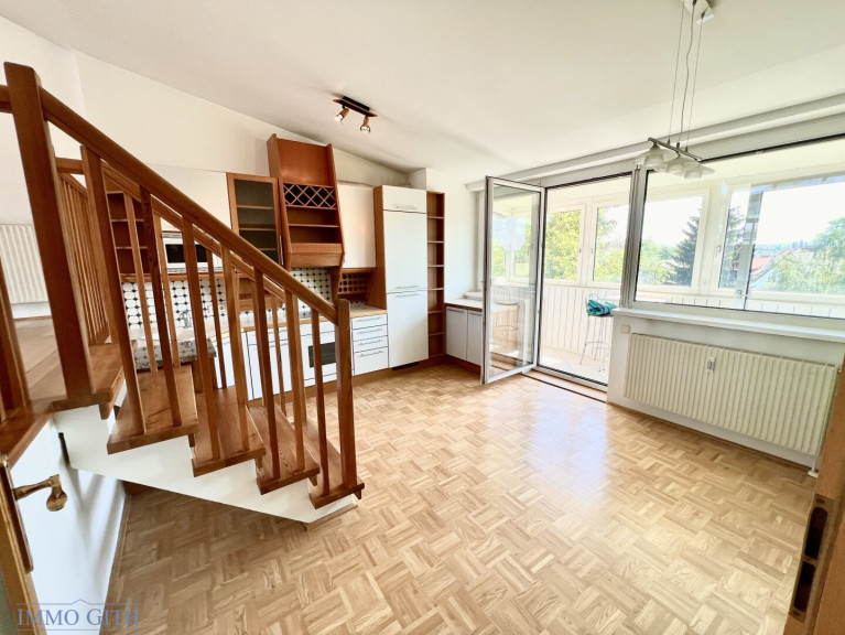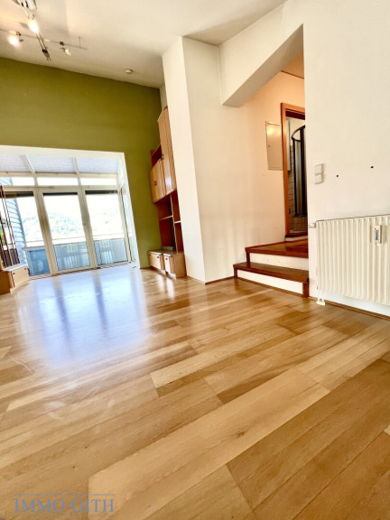 Die Wohnung befindet sich im 3. Stock (ohne Lift)und bietet 1 Vorzimmer, 1 offene Wohnküche mit Essbereich, 1 sehr großes Wohnzimmer, 1 Büro (Durchgangszimmer), 1 gemütliches Schlafzimmer mit begehbaren Schrankraum, 1 Badezimmer mit Fenster, Dusche und Waschmaschinenanschluss, 1 Wintergarten mit einem extra überdachten Balkon, 1 große Terrasse auf der Westseite und 1 getrenntes WC mit Handwaschbecken.