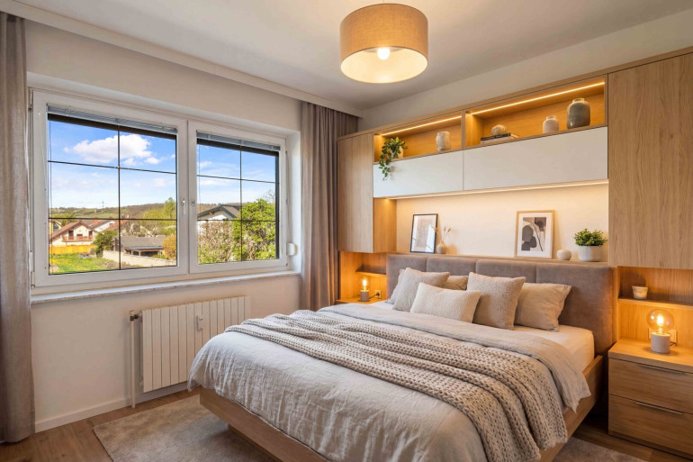 Zur besseren Vorstellung wurden ausgewählte Bereiche (u. a. Küche und ein Schlafzimmer) mittels Interior-Visualisierung modern dargestellt. So erhalten Sie bereits vorab ein realistisches Gefühl dafür, wie sich der Bestand stilvoll transformieren lässt.