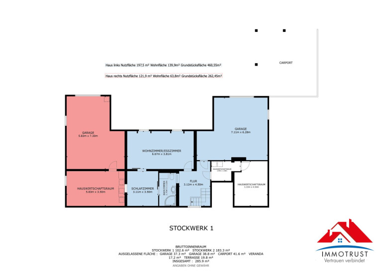- Garage mit ca. 37,7 m² – ideal für Fahrzeug, Werkstatt oder zusätzlichen Stauraum
