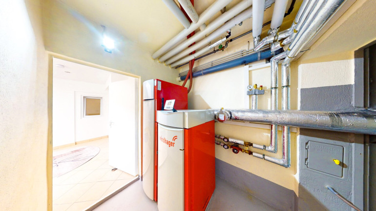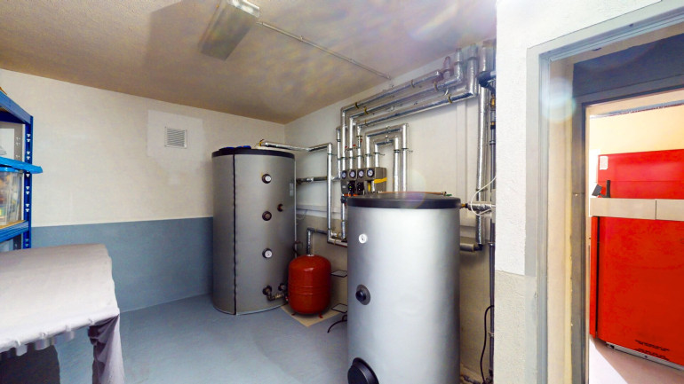 Technisch überzeugt das Haus ebenfalls auf ganzer Linie. Im Heizraum befindet sich eine Pelletheizung der Firma Windhager welche nicht nur für diese Haushälfte, sondern ist auch für die rechte Haushälfte mit ausgelegt und entsprechend angeschlossen ist, wodurch eine effiziente und gemeinschaftlich genutzte Wärme- und Warmwasserversorgung gewährleistet wird. Im Zuge der Erneuerung wurden weitere Systemkomponenten modernisiert. Dahinter befindet sich ein zusätzlicher Abstellraum mit Pufferspeicher und Warmwasserspeicher – ein durchdachtes technisches Setup, das besonders von substanzorientierten Käufern geschätzt wird. Das gesamte Haus ist gedämmt, laufend gepflegt und vermittelt den Eindruck eines sehr gut erhaltenen, nahezu neuwertigen Objekts.