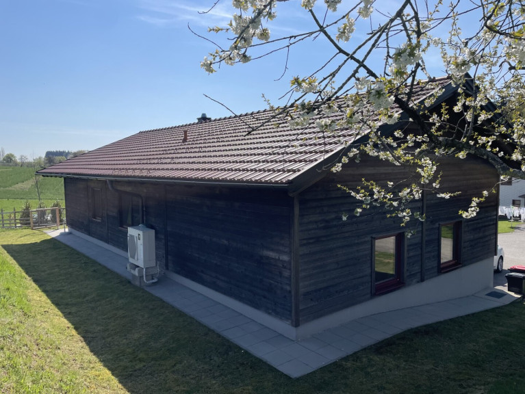 Das Haus überzeugt durch eine durchdachte Architektur und eine energieeffiziente Bauweise, die langfristig sehr geringe Betriebskosten ermöglicht. Hochwertige Holz-Alufenster mit 3-fach-Verglasung sorgen für optimale Wärmedämmung und ein angenehmes Wohnklima.