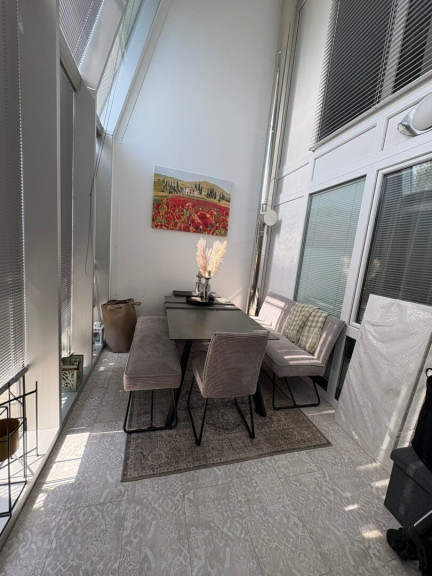 - Erdgeschoss: Großzügiger Wohnbereich mit direktem Zugang zum Solaratrium und Garten, offener Essbereich mit integrierter Küche, praktischer Abstellraum sowie separate Toilette mit Vorraum.