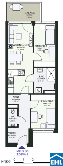 Fliesen, Parkett, Fußbodenheizung, Wohnküche / offene Küche, Personenaufzug, Dusche