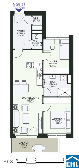 Das MQG wird als siebengeschossige bis zehngeschossige Hofstruktur realisiert und überzeugt durch eine hochwertige architektonische Umsetzung. Die vier Baukörper sind jeweils zweihüftig organisiert und über großzügige, bis zu acht Meter breite Längsatrien erschlossen, die als kommunikative Begegnungszonen dienen. Dank transparenter Glasüberdachungen sind diese Bereiche wettergeschützt und gleichzeitig lichtdurchflutet, wodurch eine angenehme Atmosphäre entsteht. Zudem ermöglicht dieses Konzept eine optimale Querlüftung aller Wohnungen.